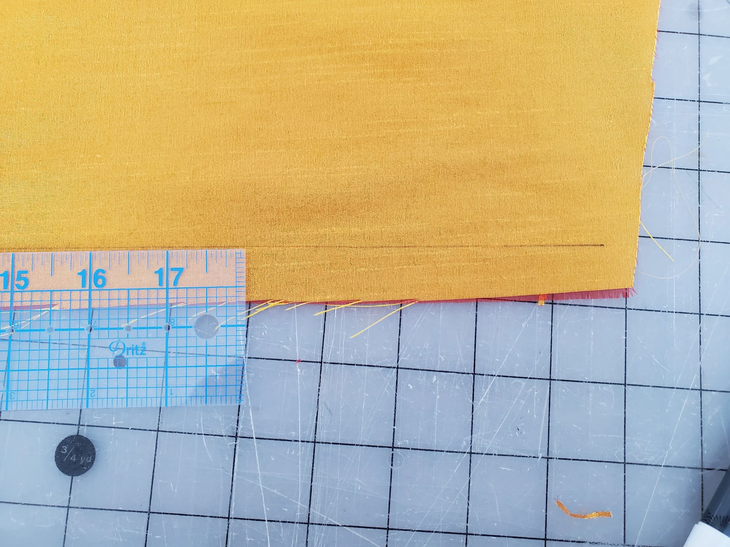 I then marked the 5/8” heam around the entire perimter of the skirt using friction pens.
